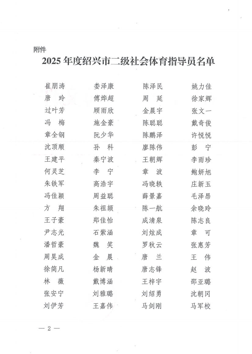 绍兴市体育局关于公布崔朋涛等557人为二级社会体育指导员的通知